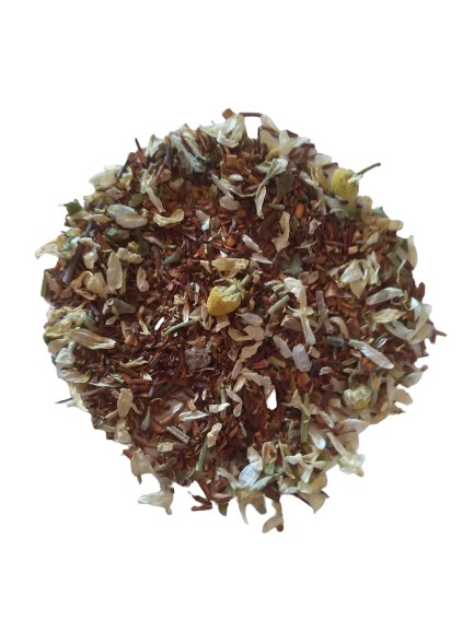 O Rooibos é um arbusto sul africano rico em vitaminas e minerais, considerado um isotônico natural. Possui propriedades antiinflamatórias e antioxidantes. Infusão livre de cafeína, associada à outras plantas com poder relaxante, auxilia na melhora do sono.