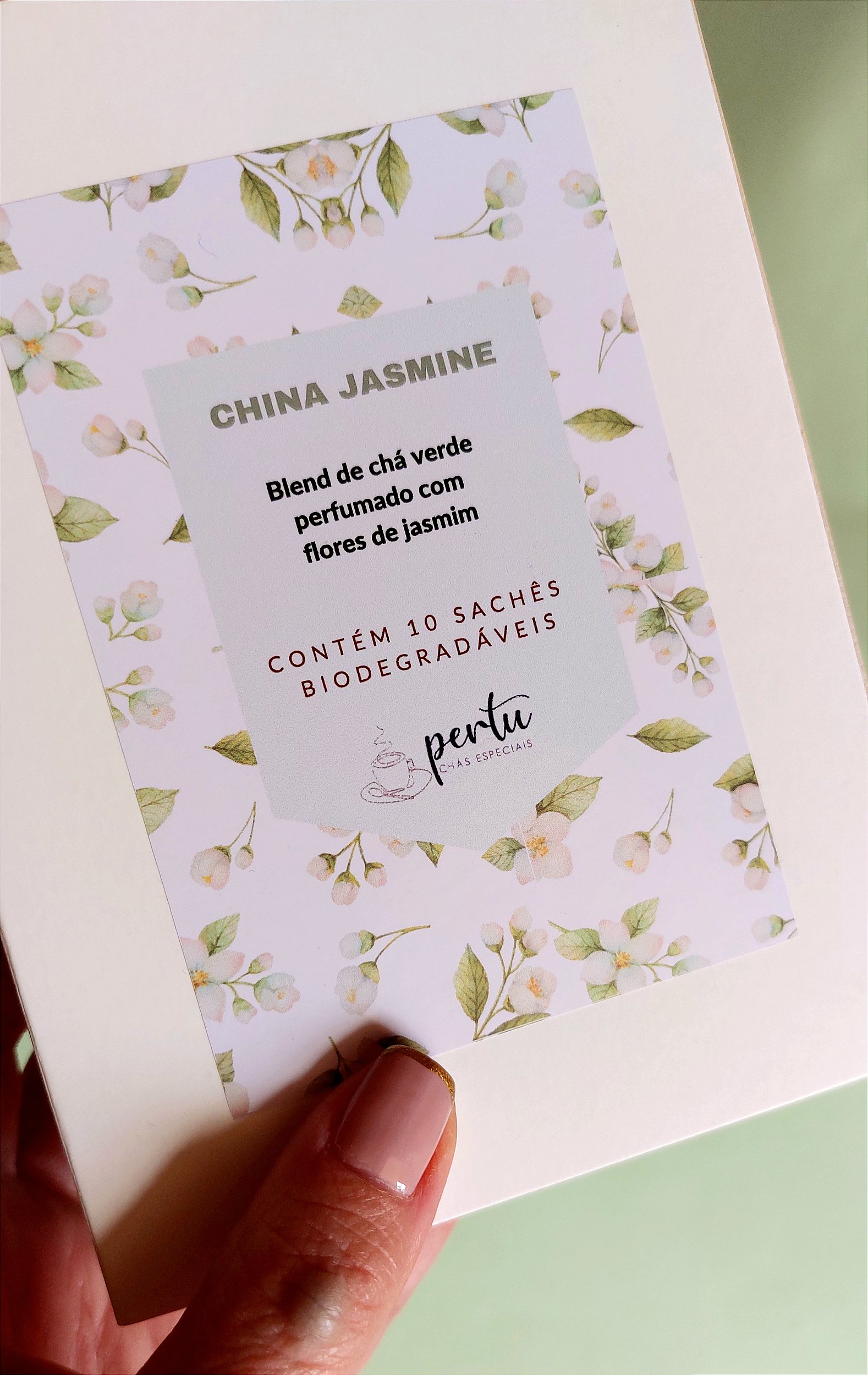 Chá Verde perfumado com flores de Jasmim. O método de perfumar já tem sido praticado há mil anos. O chá é "naturalmente" aromatizado, adicionando flores frescas de jasmim. Durante o processo de secagem, as flores são então separadas do chá.